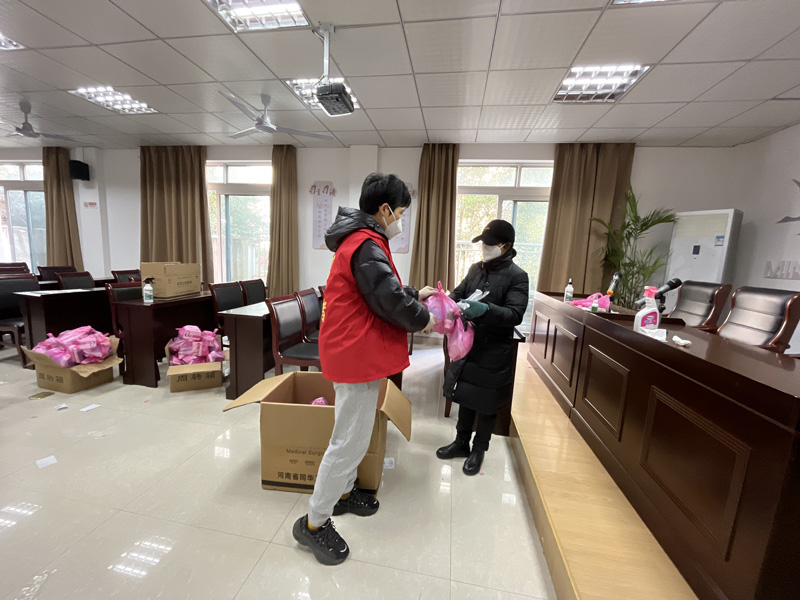 1月3日上午,羅師莊村工作人員領回健康物資后,將其一份份分配包好,及時通知轄區60歲以上老人到羅師莊村文化禮堂領取防疫包,并耐心指導他們如何使用,講解當前的防疫政策,叮囑老人做好個人防護。對于出行困難的老年群體,工作人員送藥上門,確保第一時間將“健康包”送到老人手中。裝有解熱鎮痛化痰止咳藥物、口罩、消毒噴霧和宣傳資料等東西的健康防疫包不僅緩解了老年人的購藥需求,也為老年人送上了“定心丸”。