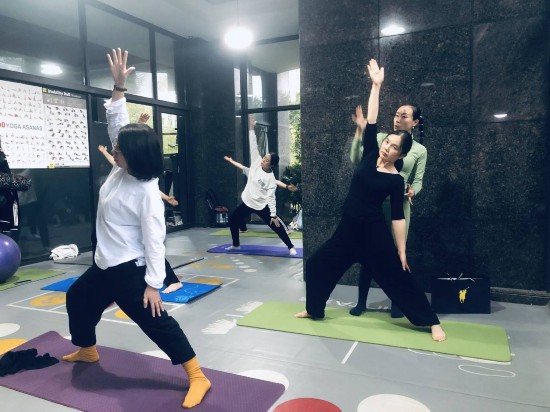 中央公館百姓健身房內市民在練習瑜伽。鄭鑄攝