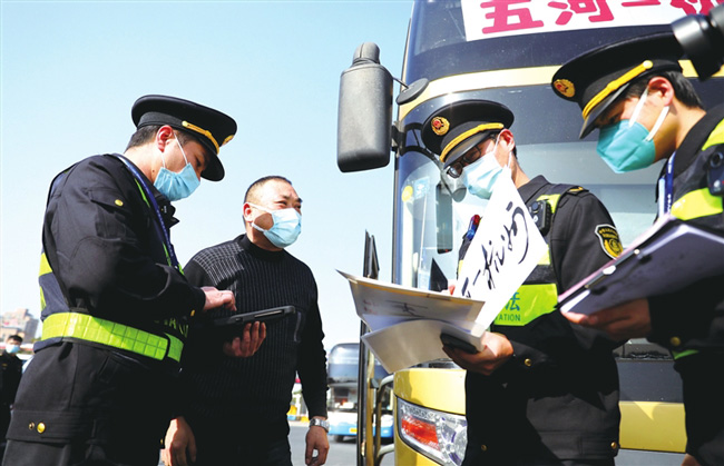 連日來,G25高速杭州南莊兜收費站,交通執法人員對過往客車展開排查。春運以來,湖州交通執法部門聯合杭州高速交通執法和交警部門,開展跨區域聯合執法行動,重點檢查長途客運運營安全,護航平安春運。(項飛)