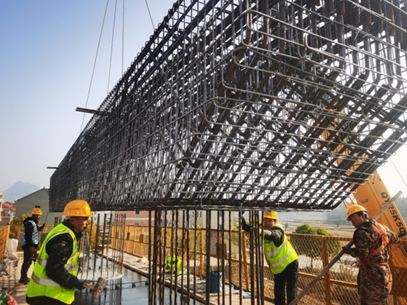 在義東3標梁板預制場,40多名施工人員正在緊張有序地開展場地清掃、鋼筋綁扎工作;在元胡大橋施工現場,汽車起重機揮舞長臂吊裝蓋梁鋼筋骨架,工人們在墩柱頂上進行安裝,繁忙的景象為新春增添了不一樣的色彩。
