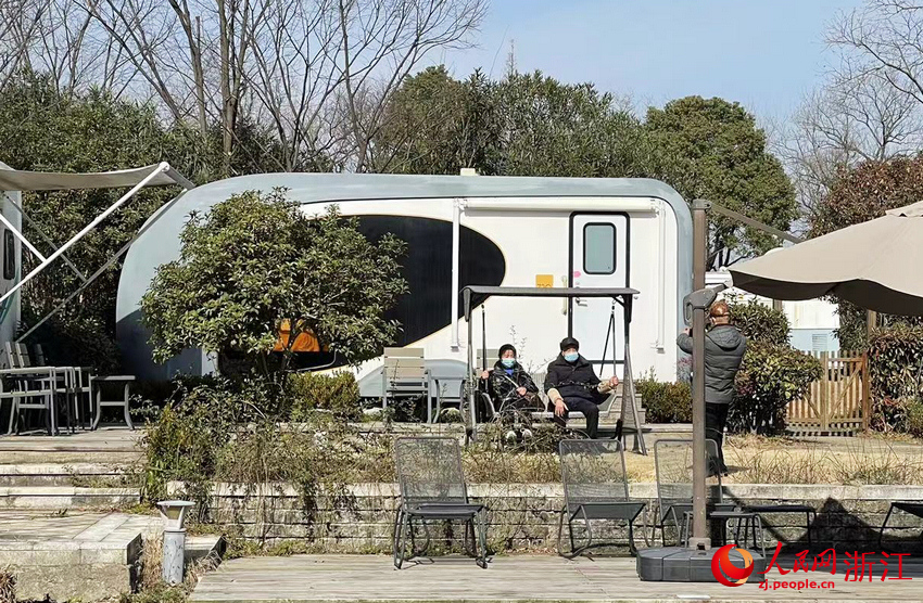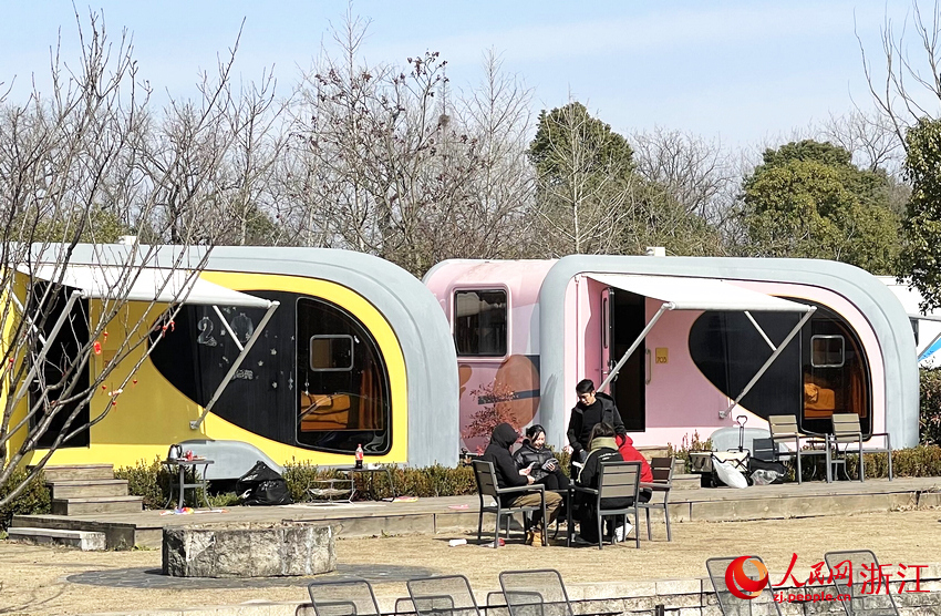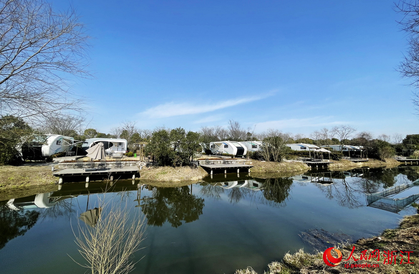 雖是隆冬時節,位于浙江海寧鹽官的芳草地房車營地內卻是一片歡聲笑語。露營愛好者三五成群相聚帳篷下,或圍爐煮茶,或圍坐燒烤,或河邊垂釣,不亦樂乎。