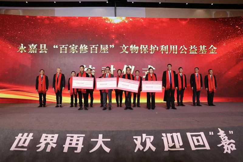 會上舉行了永嘉縣“百家修百屋”文物保護公益基金結對儀式,并為四位鄉賢代表授牌。據悉,自永嘉縣啟動“百家修百屋”文物保護修繕行動以來,全縣人民、社會各界人士積極參與、踴躍捐資,截至目前,認捐金額達93筆,共計5000余萬元。