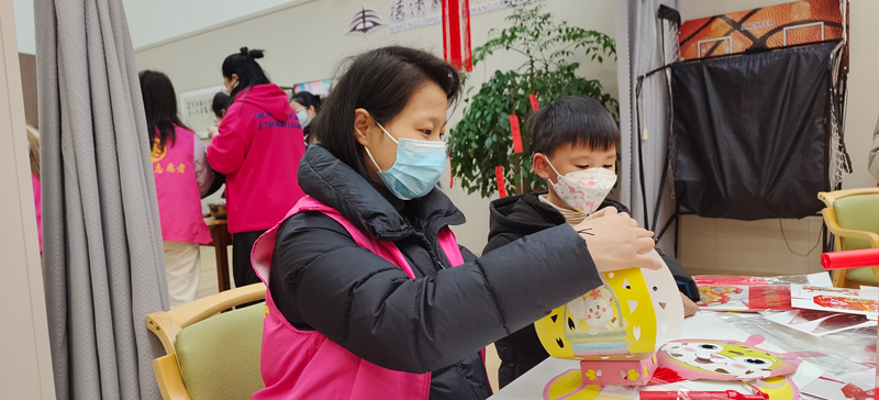 做花燈是元宵節傳統節日習俗,社工向家長和孩子們介紹了元宵文化習俗,并帶領大家觀看制作好的玉兔燈籠樣品和講解制作的注意事項,孩子們看著各式各樣的材料,紛紛動起手來,在相互交流幫助下,很快就完成了制作,喜慶的燈籠就映入眼簾,大家臉上洋溢著喜悅的笑容。