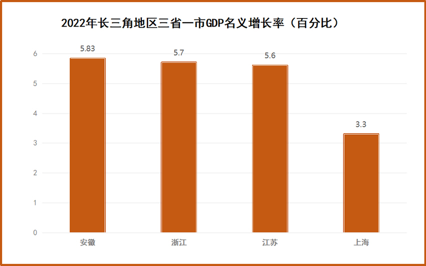 2022年長三角各地市GDP名義增長率排名中,舟山市、宿遷市、常州市位列前三甲。