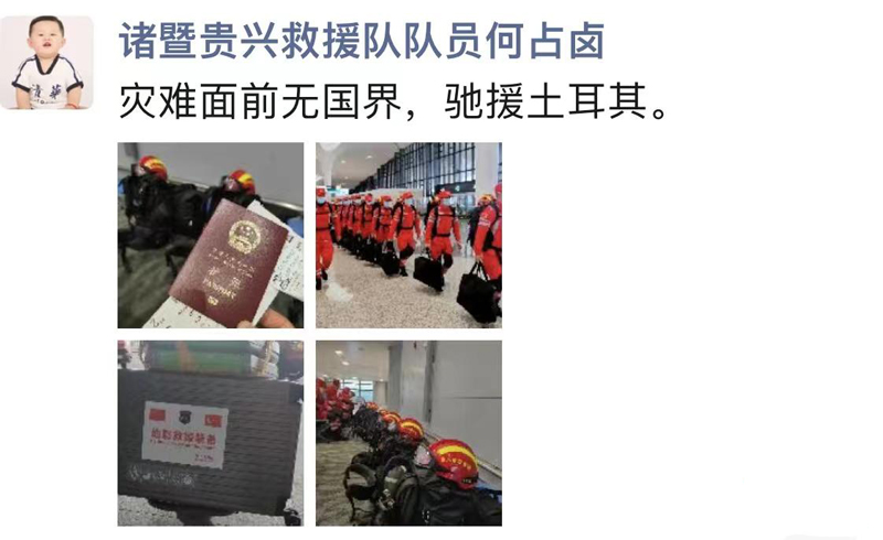 “災難面前無國界,馳援土耳其?!边@是出發前,貴興救援隊隊員何占鹵的一條朋友圈。經過4天的救援行動,他們已在土耳其完成計劃的救援任務,不久就將啟程回國。