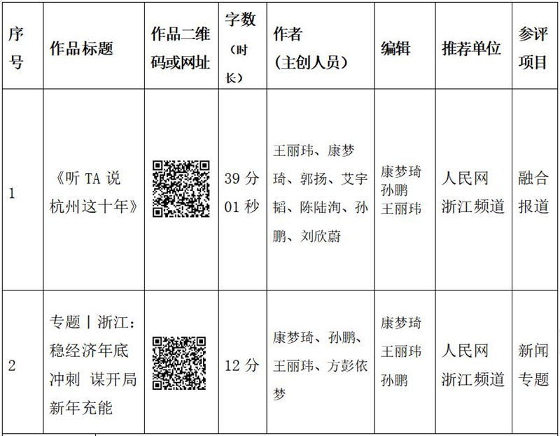人民網浙江頻道擬報送浙江新聞獎相關情況公示