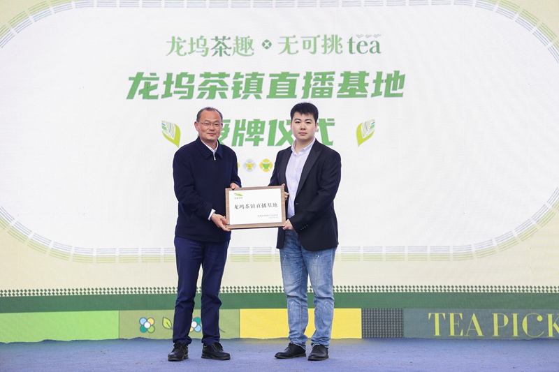 杭州之江國家旅游度假區管理委員會副主任馬定忠為龍塢茶鎮直播基地授牌。西湖區文旅局供圖
