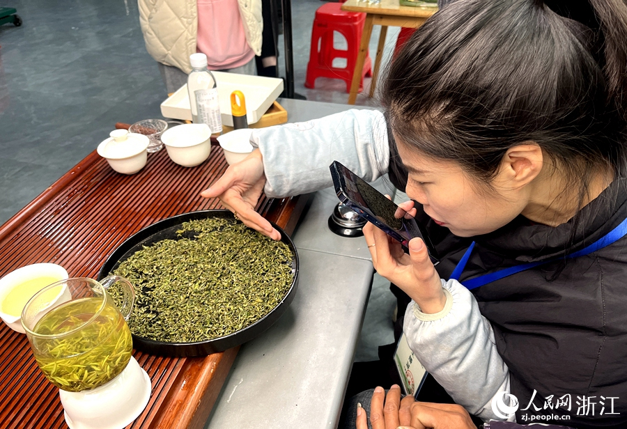 在浙南茶葉市場,主播正通過電商平臺銷售茶葉。人民網記者 張麗瑋攝