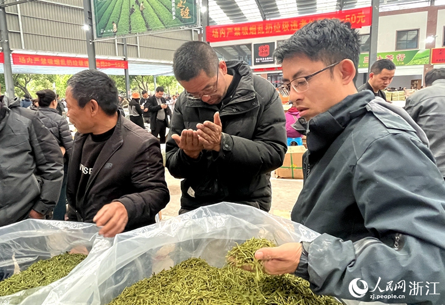隨著天氣逐漸回暖,全國各地綠茶陸續上市。日前,在全國最大的綠茶交易市場浙南茶葉市場,全國各地茶葉加工戶、經營戶和采購商們集聚與此,市場迎來了一波采購潮。