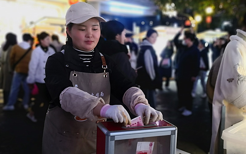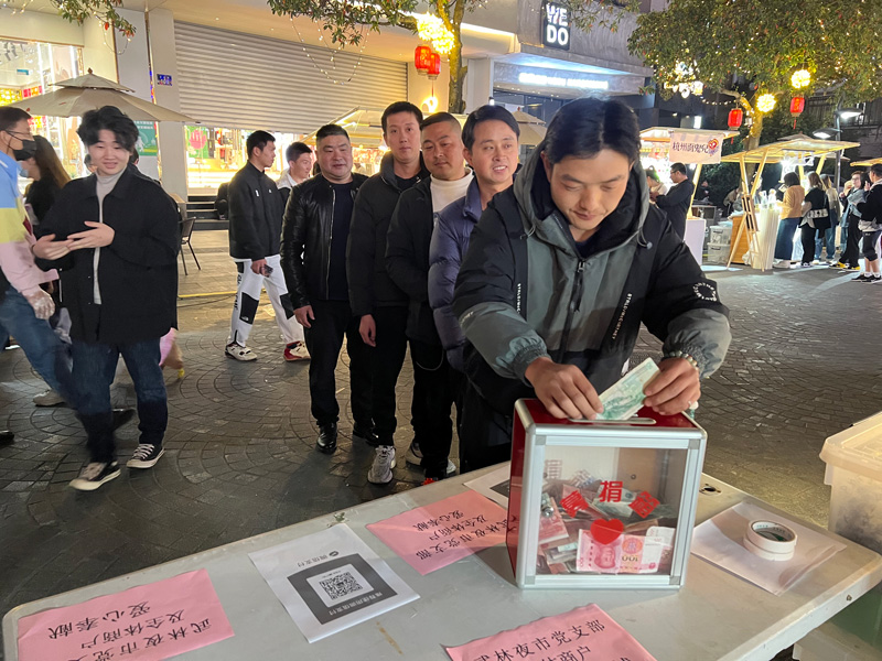 已過晚上9點,杭州武林夜市的一個“攤位”前排起了長隊。但是,排隊的不是游客,“攤位”也不在販賣網紅美食,而是夜市的商戶們正在有序捐款,這到底是怎么一回事?