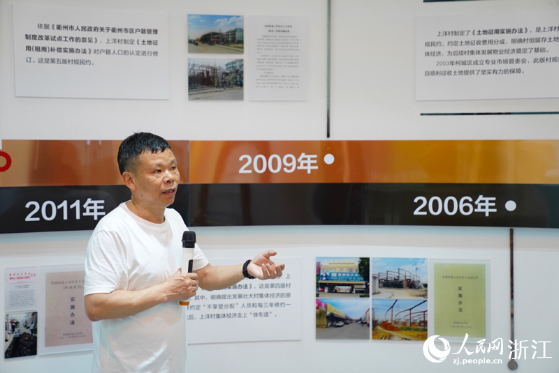 衢州上洋村黨支部書記黃岳華介紹村規民約修訂完善的過程。人民網記者 郭揚攝