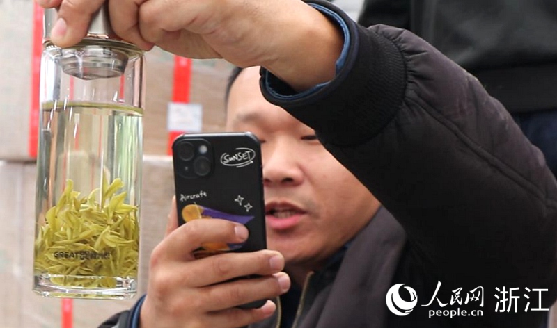 茶商在直播間介紹茶葉。人民網 張帆攝