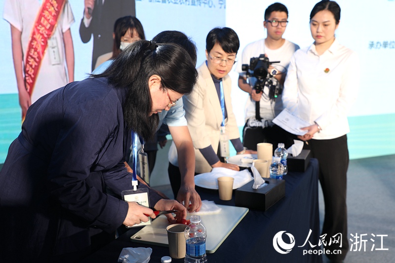 比賽現場,工作人員將來自浙江省各地的參賽樣品進行收樣、封樣編號。浙江省農業農村廳供圖