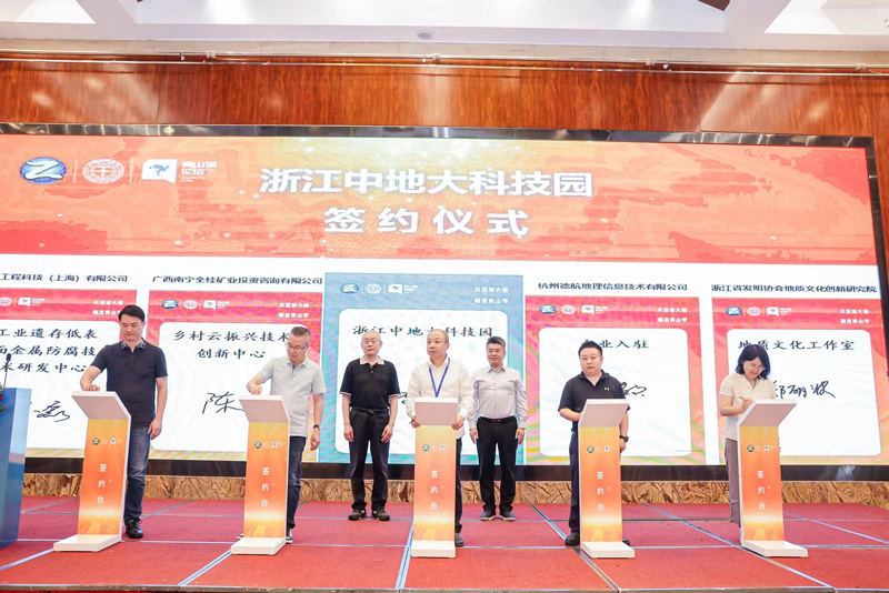 論壇上,8位來自學術和產業界的專家分別作專題報告,分享了在找礦、工程、環境監測和地質災害防控等資源環境領域的前沿創新成果。論壇還舉行了園企共建的工業遺存低表面金屬防腐技術研發中心、鄉村云振興技術創新中心等項目落地入駐青山湖科技城簽約儀式。