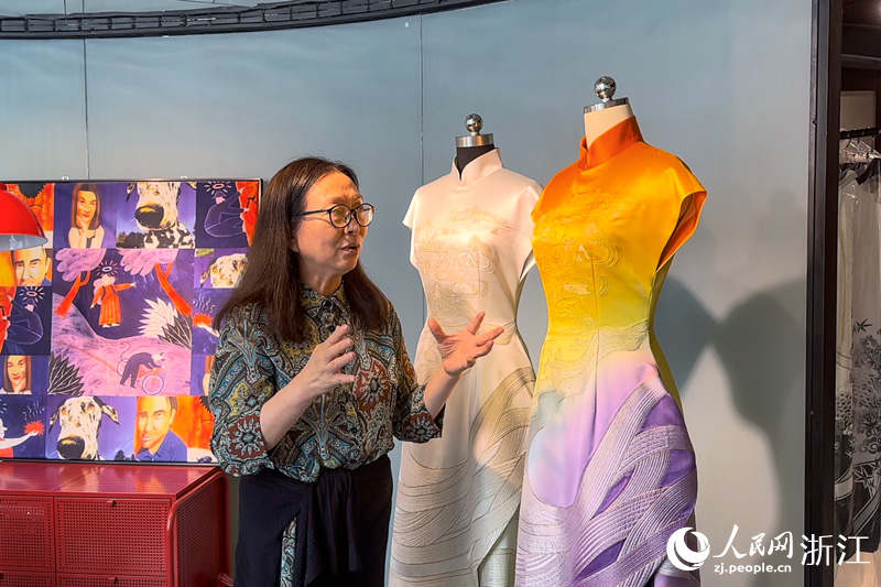 連日來,吳海燕忙著往返于工作室和紡織工廠,做好杭州亞運會禮服樣衣的落地及后續工作。