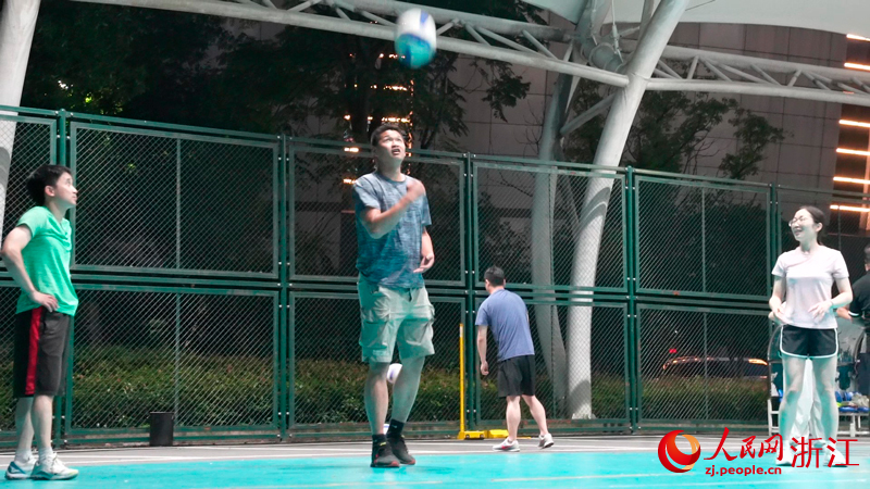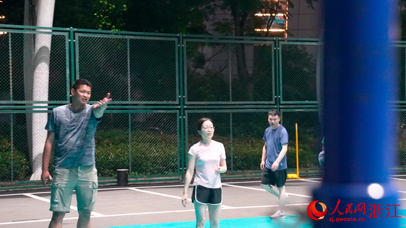 “他們打的是氣排球,速度沒有排球快,易上手,適合的年齡段也較廣?!毙煨”忉尩?。原先,這里是停車場,他看到當地排球愛好者很難找到一些正規的運動場地,便自己用塑膠鋪出了如今的四塊標準排球場,之后又找來了攔網、排球等器械設備,自己偶爾也會下場指導規范動作?!斑@些愛好者對排球的熱情很高,也會經常組隊參加比賽,我也正好用自己的一技之長,促進本地的排球運動氛圍?!毙煨”f。