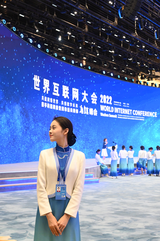 王呈鷺在2022世界互聯網大會上擔任禮儀志愿者。受訪者供圖