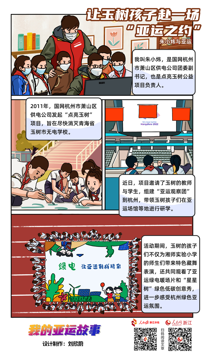“今年‘六一’兒童節期間,我們邀請了玉樹孩子來到杭州,近距離感受亞運的魅力,同時我們發起了‘點亮玉樹·電靚亞運’三大行動,以綠色探訪營、綠色空中課堂和綠色驛站,讓東西部教育有更多的交流,讓兩地的孩子更加了解綠色故事、更加了解綠色亞運?!薄包c亮玉樹”項目負責人、國網杭州市蕭山區供電公司員工朱小煒介紹。