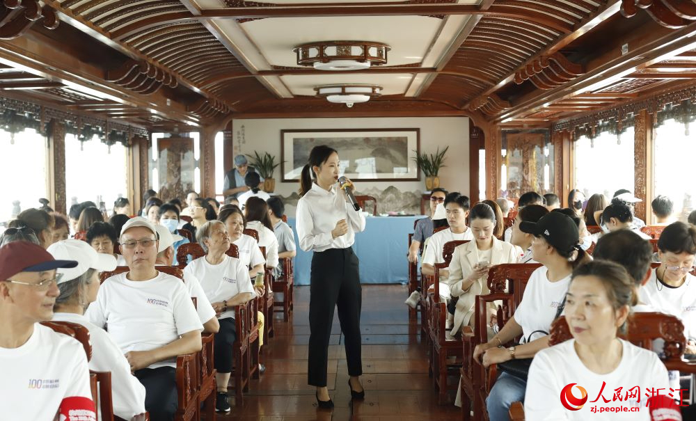 丁露赟為綠馬甲西湖小志愿講解員現場點評。受訪者供圖