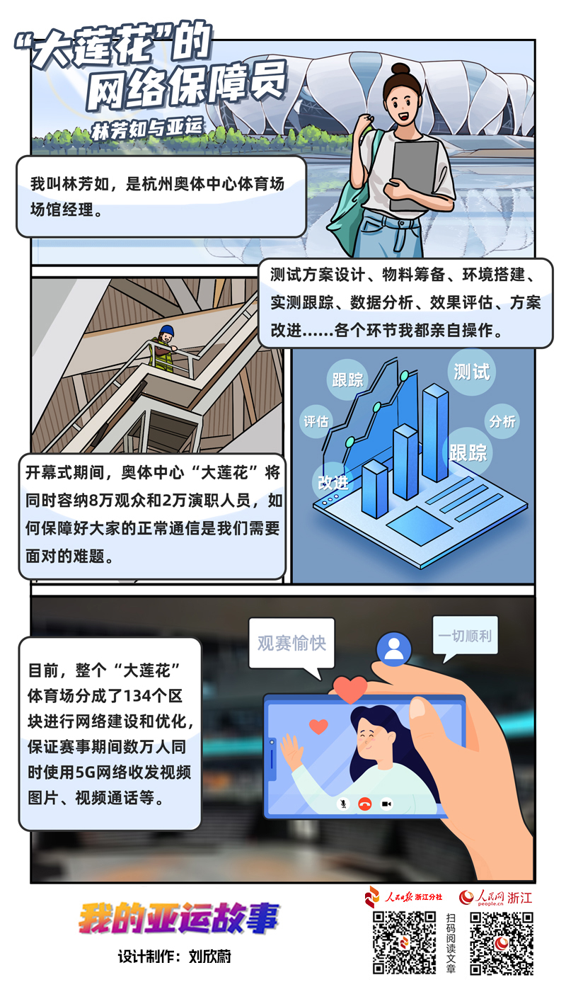 “大蓮花”,即杭州奧體中心體育場,是杭州亞運會和亞殘運會開閉幕式的舉辦場館?!啊笊徎ā梢哉f是本次亞運會最重要的場館之一,做好通信網絡保障尤為關鍵?!焙贾菀苿泳W絡亞運專項團隊成員、“大蓮花”場館經理林芳如介紹,開幕式期間,“大蓮花”將同時容納8萬觀眾和2萬演職人員,這10萬人的正常通信都需要得到可靠的保障?!耙郧暗拇笠幠1U隙际且?G用戶為主,這也是首次以5G用戶為主的大規模通信保障?!绷址既缯f。