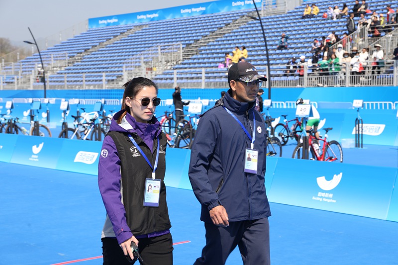 “鐵人三項這個項目對于從業人員的體能要求非常高,不僅運動員是‘鐵人’,工作人員也都是‘鐵人’?!碧諣c說,“我們執裁一場比賽經常需要在高溫下持續工作8小時,經常從早上五六點工作到下午兩三點,沒有充沛的體能是無法完成這項工作的?!?/p>