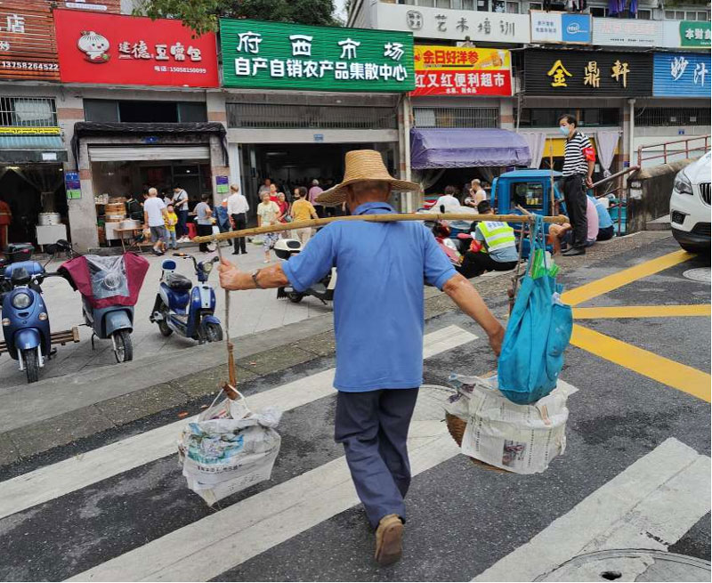 菜農走向“府西市場”。建德市綜合行政執法局供圖