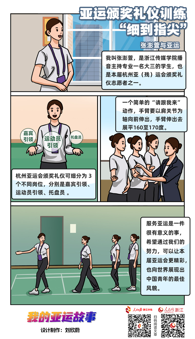 “難點就在于對動作細致入微的控制,每一次邁步、每一個表情、每一個眼神,都要體現出整體的協調性?!笔状螀⒓訛槠谝粋€月的全封閉式亞運頒獎禮儀集中訓練,張澎萱既感到責任重大,又信心滿滿。