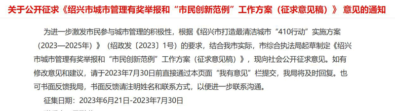 有回音丨網友建議開通“城市治理有獎舉報”平臺 紹興:已制定方案并公開征求意見