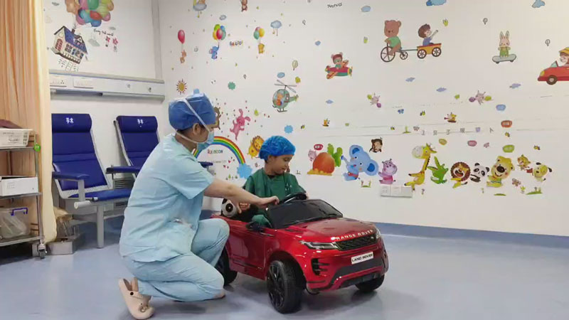 小朋友開著“小汽車”去接受治療。舟山市委宣傳部供圖