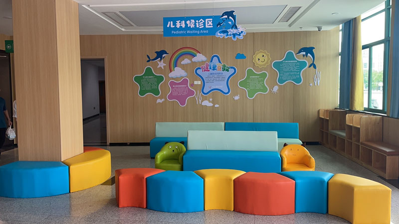 在舟山市婦女兒童醫院嬰幼兒養育照護基地,墻壁和地面用卡通形象和彩色造型打造了適合嬰幼兒活動的場景。除了采用色彩溫和、質地柔軟的沙發以外,該嬰幼兒養育照護基地的桌椅、墻角還使用了圓弧形設計,從而更好保護兒童安全。