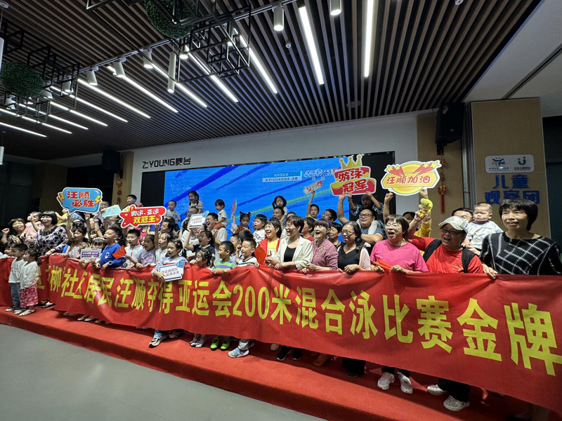 “贏了,贏了!汪順奪冠了,還刷新了亞洲紀錄!”9月24日晚,楊柳郡社區鄰里客廳大屏幕前,50余名社區居民齊聚一堂,共同慶祝鄰居奧運冠軍汪順在亞運奪冠的榮耀時刻。
