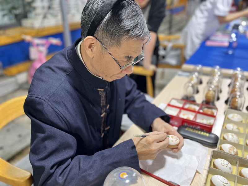 “要在僅約0.3毫米厚的蛋殼上雕刻出栩栩如生的圖案并保持蛋殼完整而不破,絕非易事?!痹阱X塘江邊“領潮驛站”旁,蛋雕手藝匠人現場展示“絕活”,一支鉛筆、一塊橡皮、一把刻刀,吉祥物“宸宸”的形象逐漸清晰起來......現場居民們贊口不絕,為能近距離觀看到這項非遺項目激動不已。