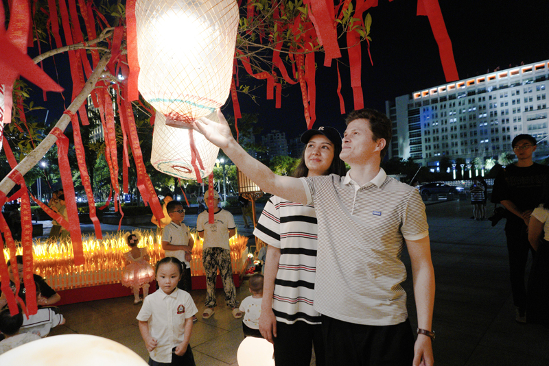 9月28日晚,國際友人akmal(阿珂姆)和Kamilya(卡咪拉)來到溫州蒼南縣中心湖廣場打卡“月滿山?!s耀蒼南”主題集市,與市民游客一起逛集市、看巡游、慶雙節,在豐富的活動中切身感受蒼南人民歡度中秋的濃厚氛圍。