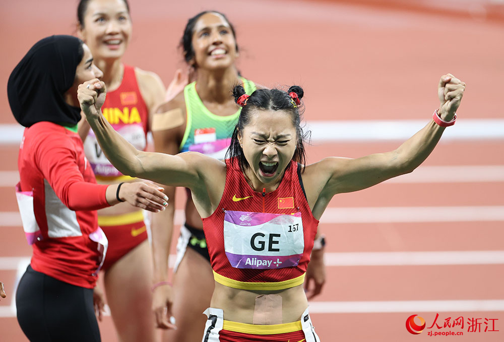 在亞運會期間,中國運動員表現尤為精彩:杭州亞運會金牌大戰首日,中國賽艇組合鄒佳琪/邱秀萍拿下本屆亞運會首枚金牌;來自山東13歲的崔宸曦在滑板女子街式決賽中,憑借“大膽”的動作取得金牌;梳著“哪吒頭”的葛曼棋以11秒23奪得女子百米金牌;男子100米決賽,謝震業以9秒97實現“只奪金,不奪銀”的豪言壯志……一枚枚金牌體現了運動員勇于爭先、在極限中自超越自我的拼搏精神。