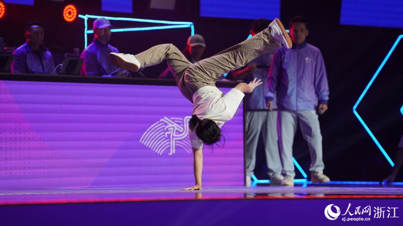 中國隊17歲小將劉清漪在霹靂舞項目女子組決賽中拿下金牌,這是亞運會史上第一塊霹靂舞女子項目金牌。人民網 陳陸洵攝