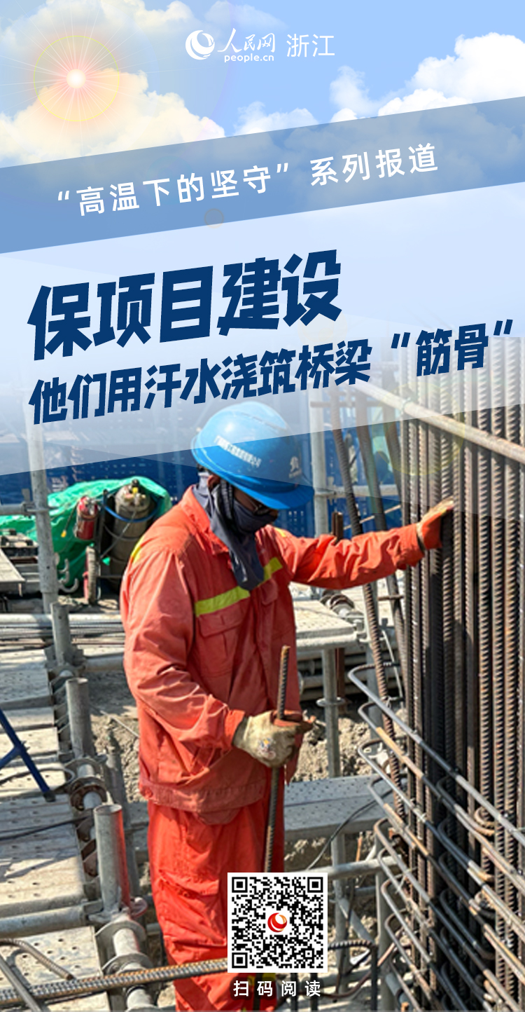 進入盛夏時節,杭州持續高溫。熱浪“烤”驗下,余杭區東西大道運河大橋改造工程的建設者們仍頭頂烈日堅守在崗位,他們用汗水澆筑橋梁“筋骨”,全力保障著橋梁施工穩步運行。
