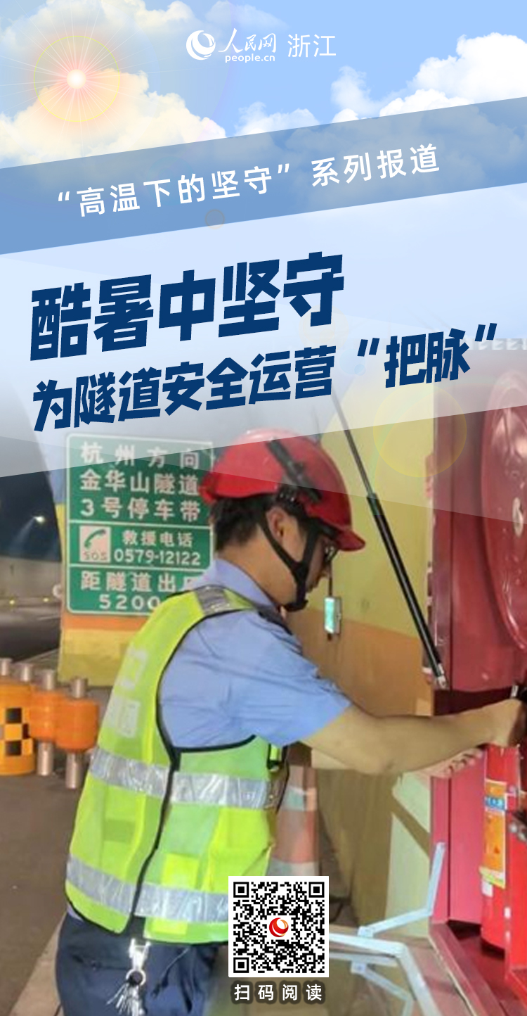 7月22日,金華最高氣溫38攝氏度。炎炎烈日下,金華山特長隧道內宛如蒸籠。身穿反光背心的隧道巡檢員李杰不懼高溫,穿梭在嘈雜悶熱的隧道里,默默守護過路人的行車安全。