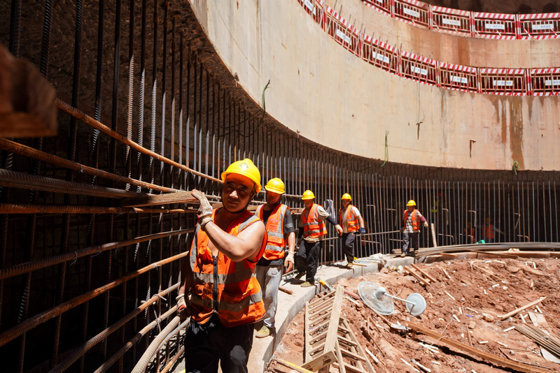 介紹完前池,筆者跟隨徐楊深入顧家橋港進水口豎井進行探訪。這座豎井目前的高度已相當于14層樓,未來還將繼續加深。工人們通過緊貼井壁的扶梯進入井底作業,隨著深度的增加,氣壓逐漸降低,對工人的體力和心理素質都是極大的考驗。徐楊說,工人們在攀爬扶梯時要時刻注意身體狀況,一旦出現心跳加快等不適癥狀要及時停下來休息,通過深呼吸等方式緩解不適。