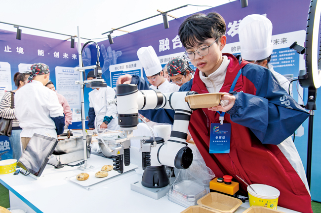 11月23日,金華市金華實驗中學操場上,中等職業學校師生正在展示專業學習成果。