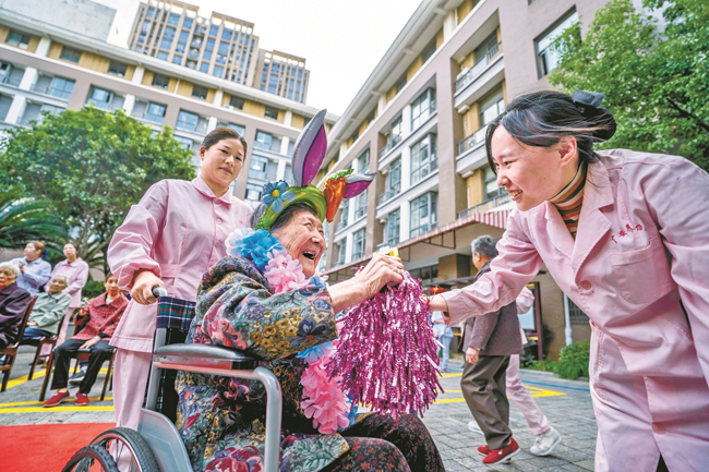 10月28日,寧波市海曙區一家養老機構開展了一場特殊的重陽主題走秀活動。老人們用各種各樣的裝飾品打扮著自己,自信邁步、笑容滿面,用靈動活力裝點秋日時光,定格溫暖的幸福瞬間。(徐誠、忻之承、郭素玲)